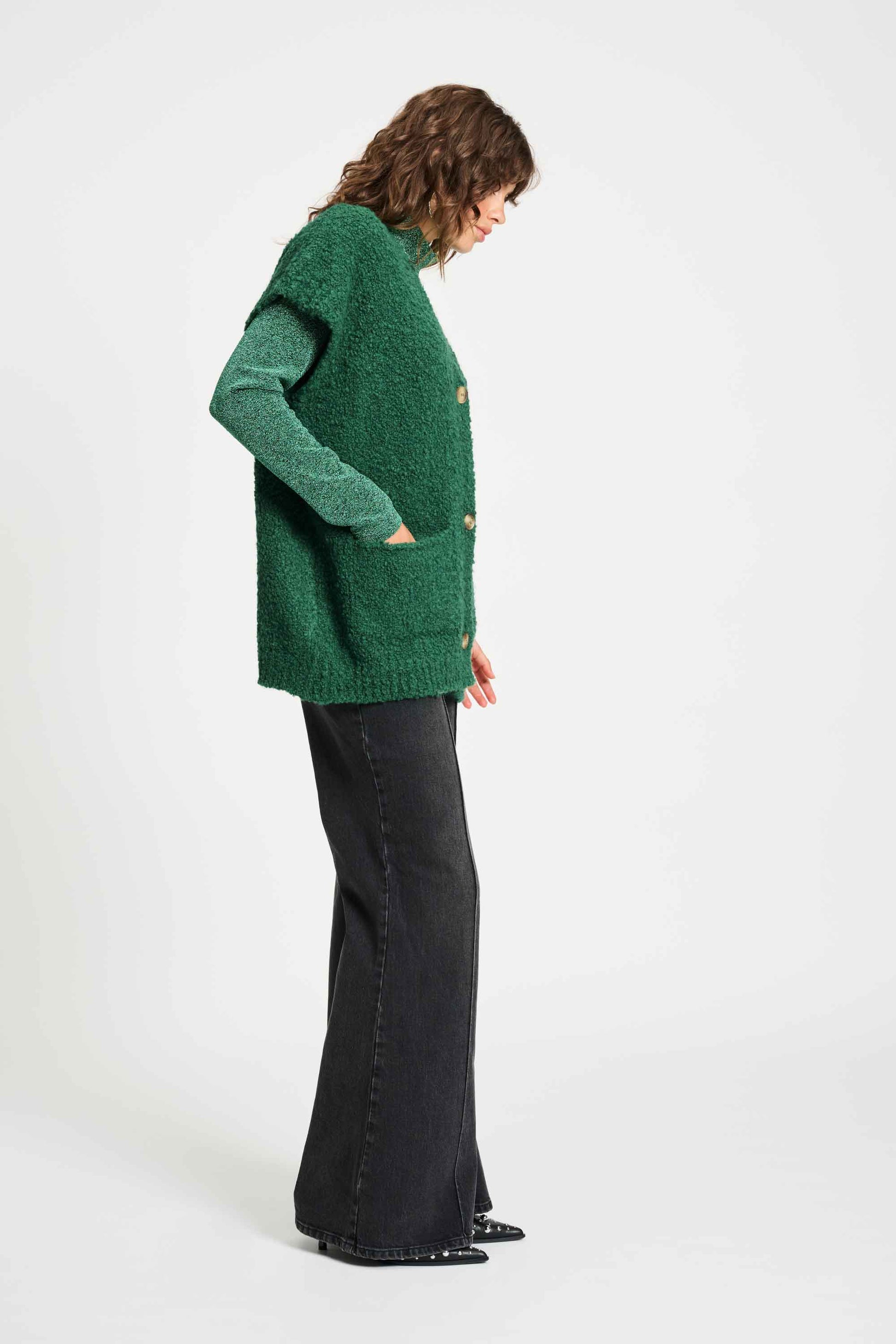 Passform: Der Cardigan ist ein zweites Coupé und est sans manches. Das Model auf dem Foto ist 176 cm groß und trägt Größe 36.