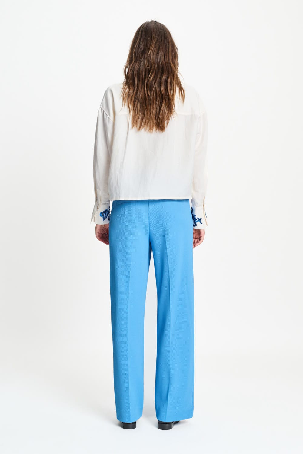 Passform: Die Hose hat eine hohe Taille mit weiten Beinen. Das Model auf dem Foto ist 176 cm groß und trägt Größe 36.