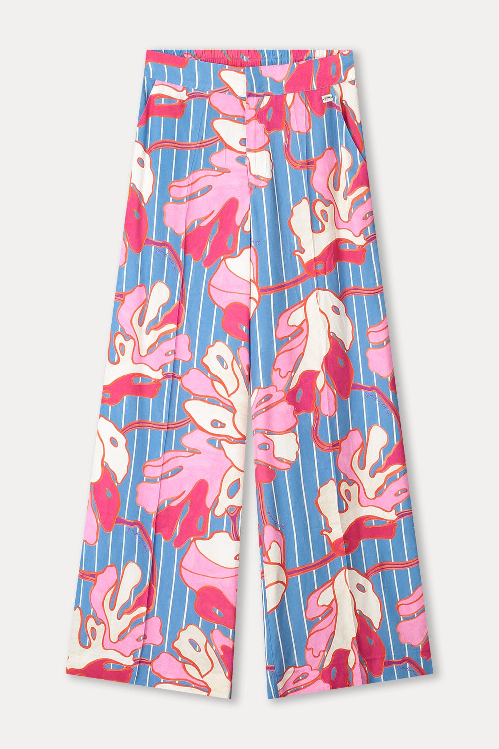 • Blau-weiß gestreifte Hose mit rosa Blumenprint