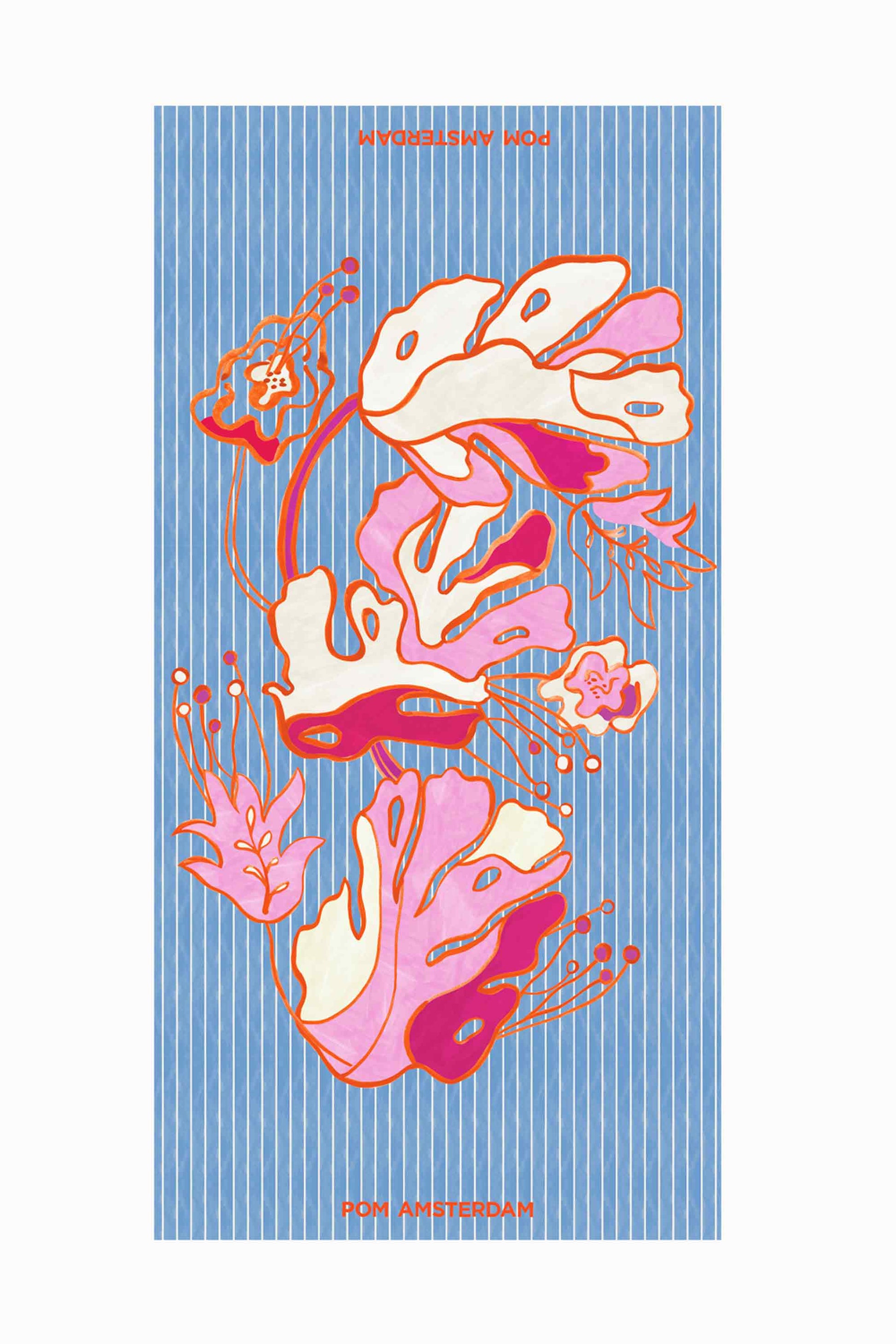 • Schal mit blau-weißem Streifenmuster und rosa Blumenprint
