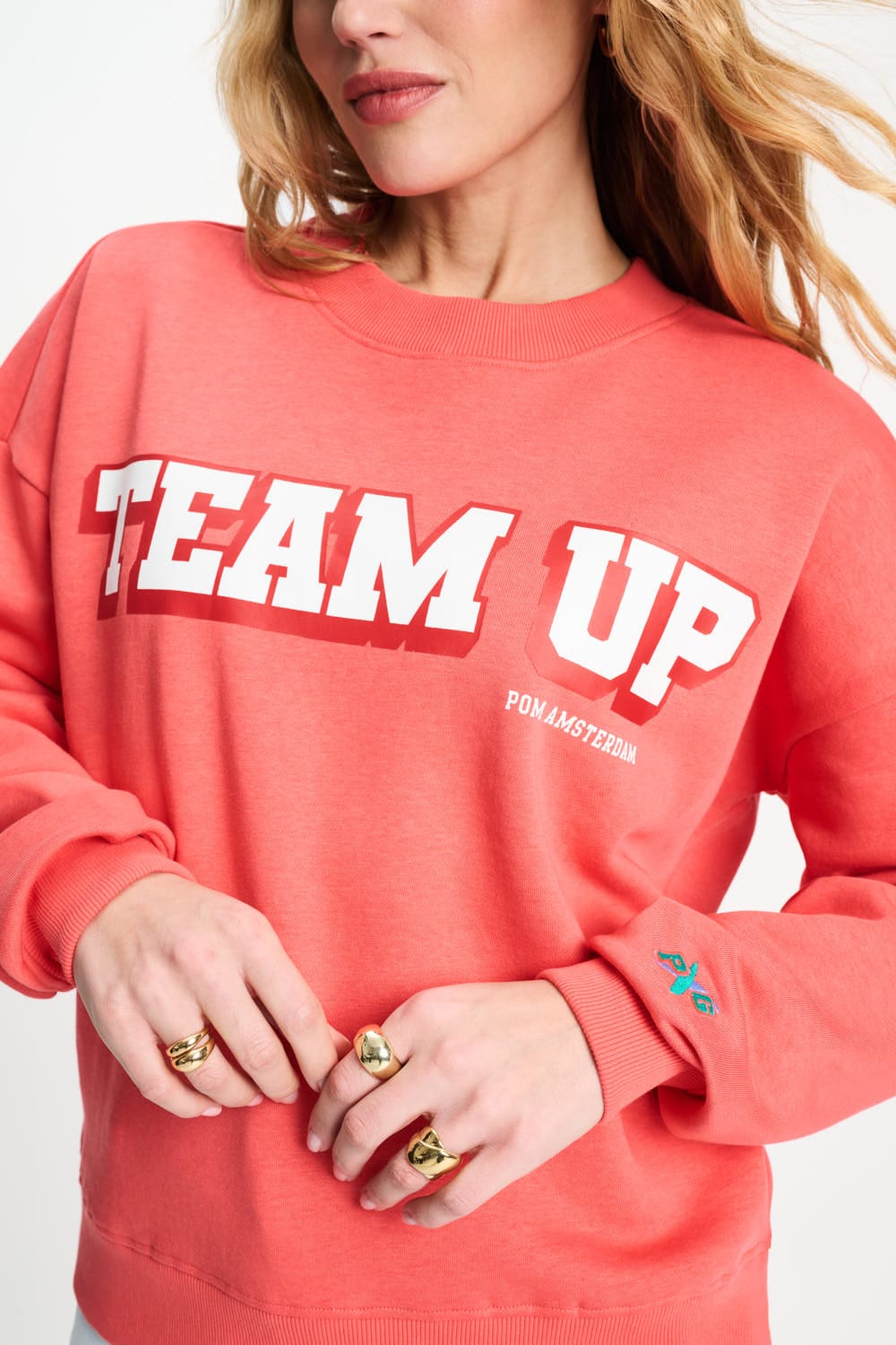• Weißes TEAM UP Artwork auf der Vorderseite