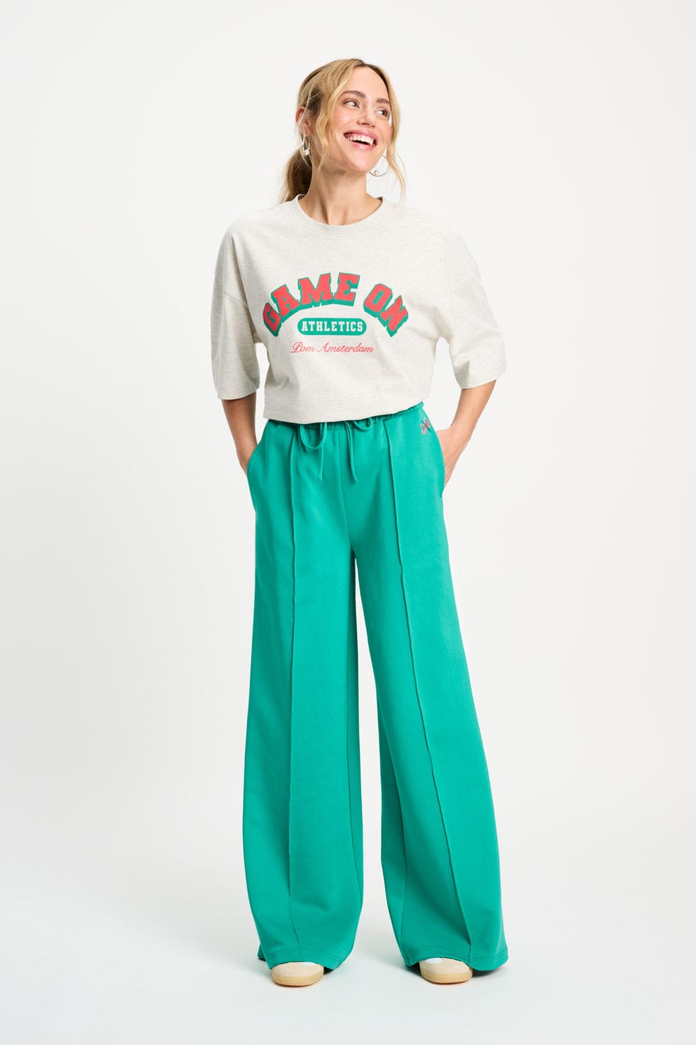 • High-Waist-Passform mit elastischem Bund und Kordelzug
